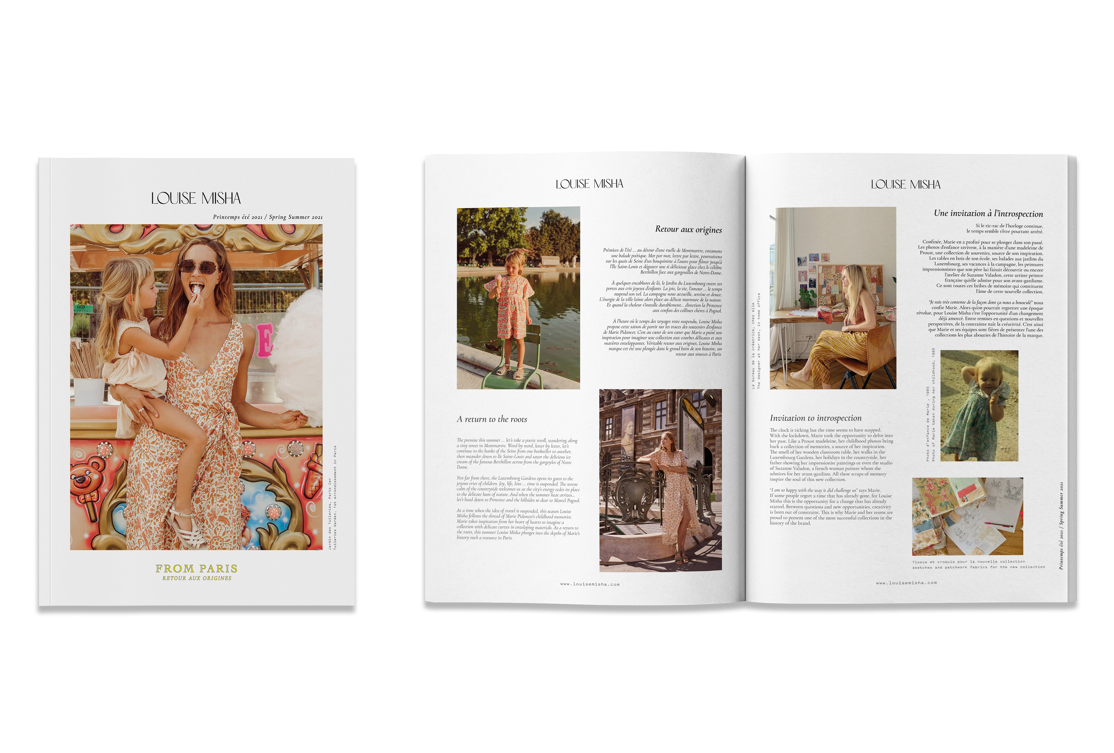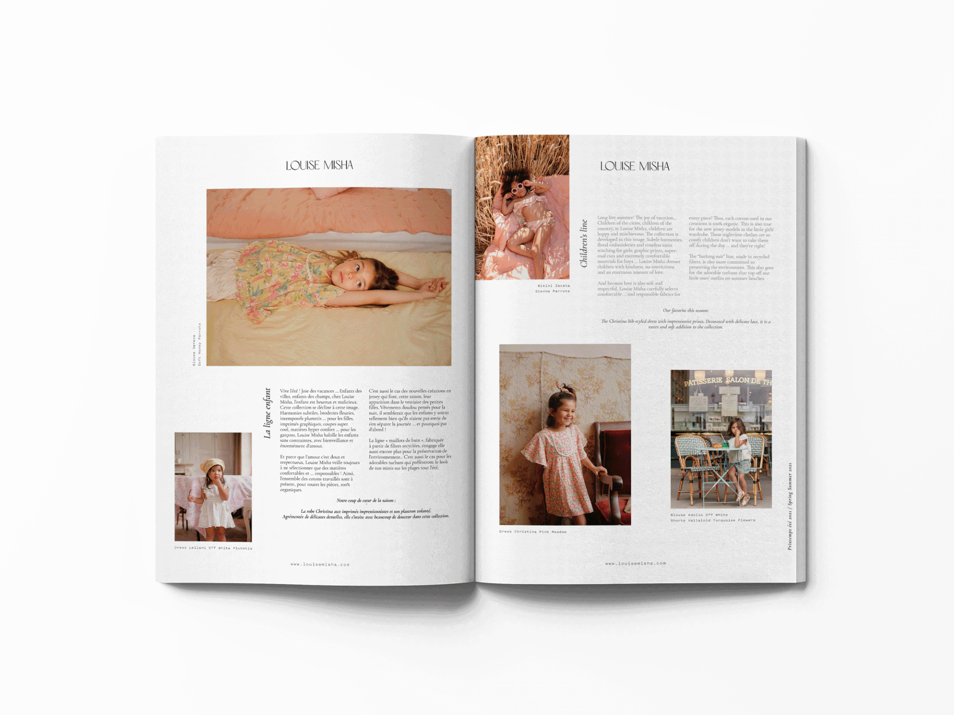 Mise en page du magazine de la collection été 2020 de Louise Misha destiné à être mis dans chaque commande du site internet